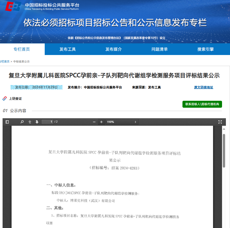 中标喜讯 | 博莱克中标复旦大学附属儿科医院代谢组学检测服务项目
